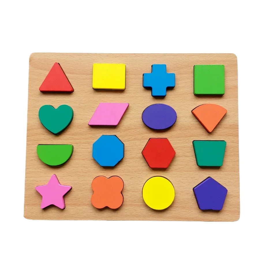 This colorful wooden puzzle board is designed to introduce children to a variety of geometric shapes while enhancing their problem-solving and motor skills. With vibrant colors, smooth edges, and durable construction, it provides a safe and engaging learning experience following Montessori principles.