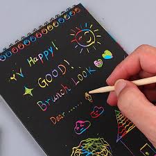 - DIY scratch art with hidden rainbow colors.