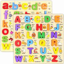 - 3D wooden puzzle – large alphabet blocks that fit easily into the board for hands-on learning