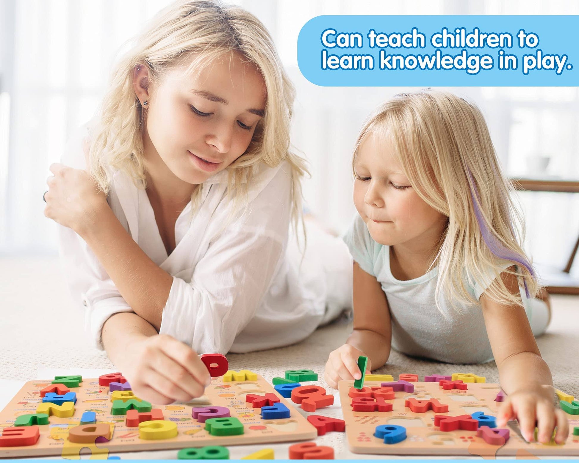 Wooden ABC Puzzle Set with Shapes for Kids – 3D Alphabet Learning Board